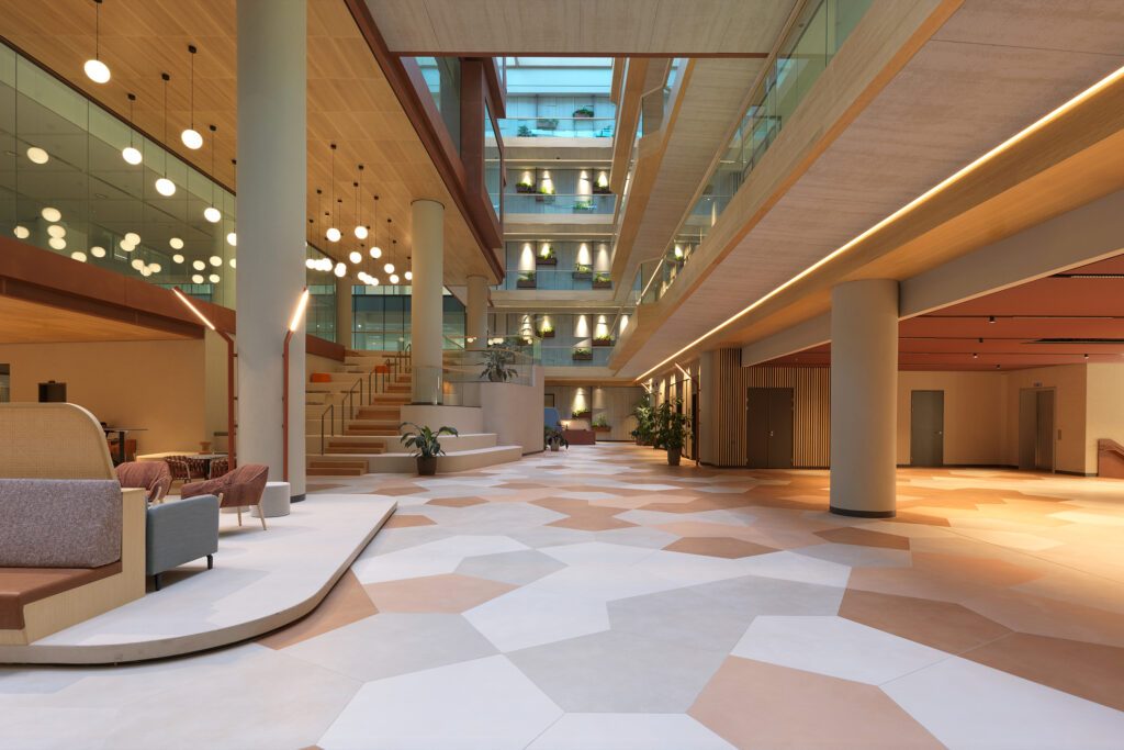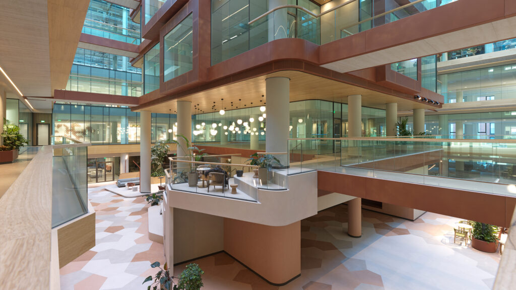The building holds both BREEAM Excellent and WELL Gold certifications, underscoring its focus on sustainability and wellbeing.