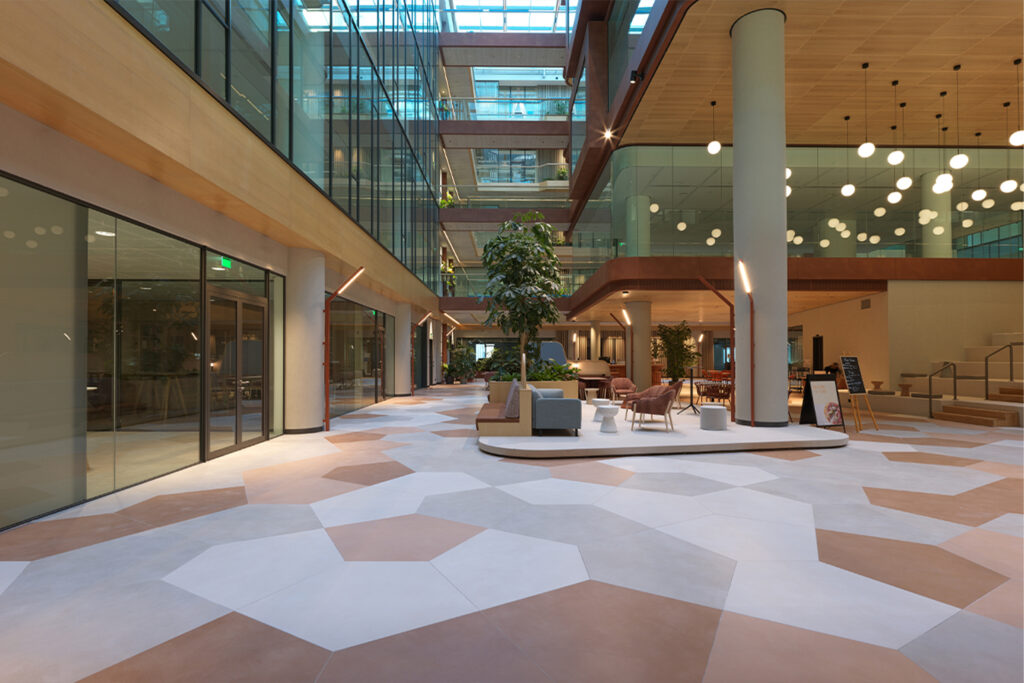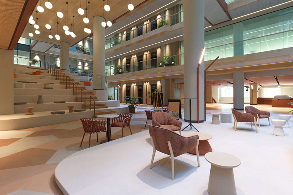 At its heart is a central square inspired by an Italian piazza, where natural light, greenery and custom details create an open, welcoming atmosphere. Pergolas offer intimate spots, a grandstand invites casual meetings, and a central playroom adds a sense of fun and balance. The space flows naturally across levels, with diverse furniture typologies supporting flexible use throughout the day.