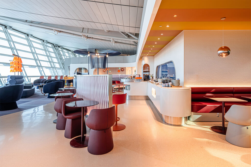 Located in Terminal 1 of Incheon International Airport, this contemporary design spans 555 square metres and provides stylish seating for up to 148 customers. The innovative lounge offers a vibrant and calming atmosphere for travellers to recharge, relax, and dine, incorporating the distinct Oneworld identity with subtle nods to Korean culture.